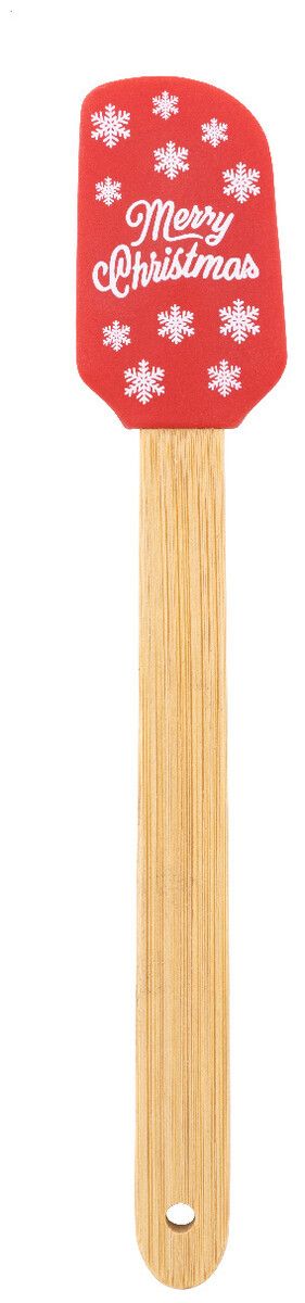 Silikonová špachtle na pečení s vánočním designem a bambusovou rukojetí.