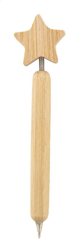 Bambusové kuličkové pero svánočním motivem nahoře. S modrou náplní.