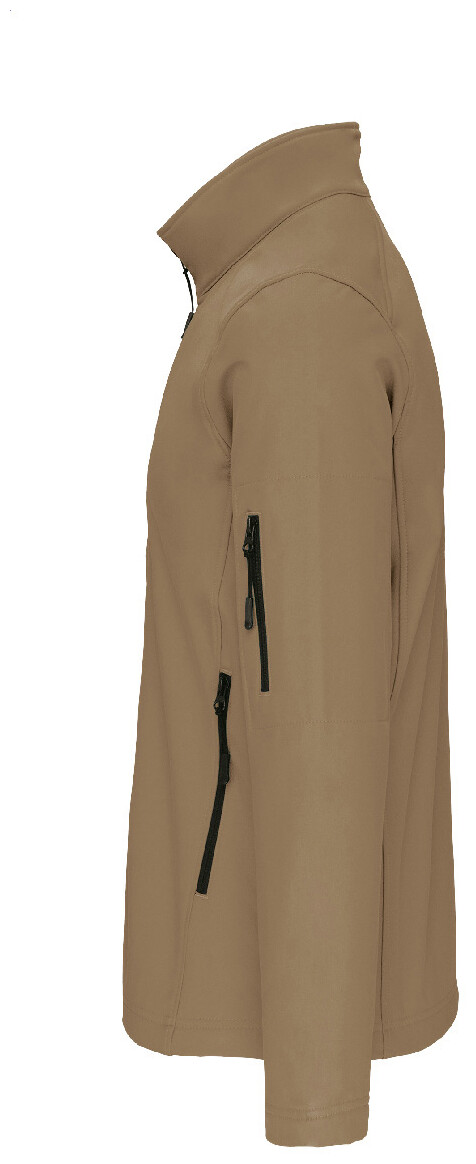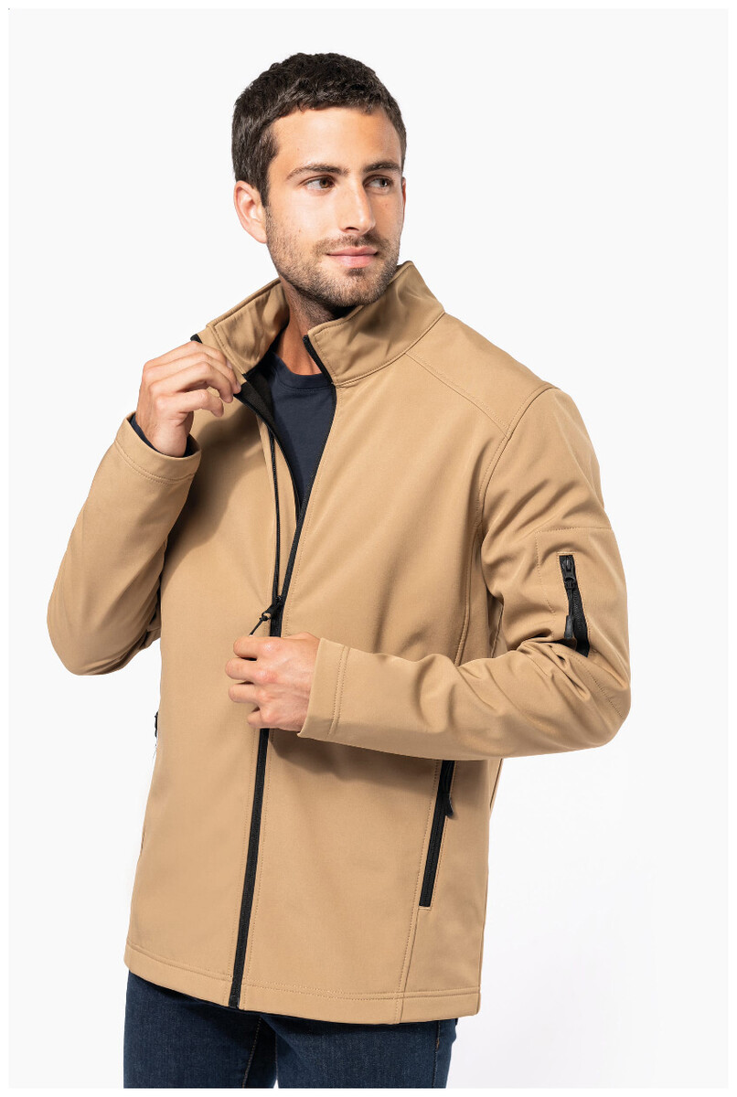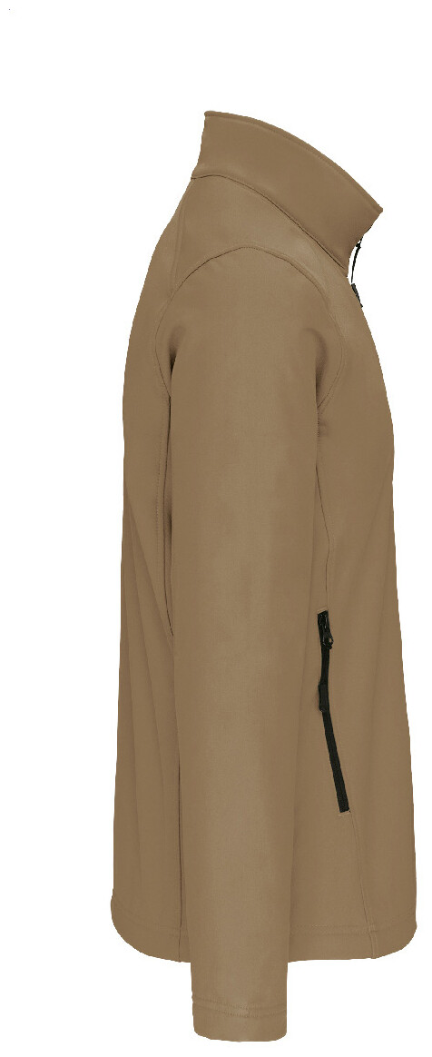 Třívrstvá, prodyšná, větru a vodě odolná softshellová bunda na zip s rukávy na zip a bočními kapsami. S prodyšnou střední vrstvou a vnitřní vrstvou z mikropolaru. Materiál: 95 % polyester a 5 % elastan, 300 g/m2. Výrobek značky Kariban.