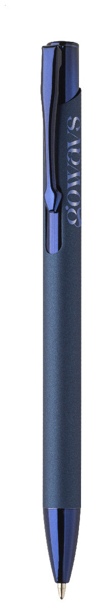 Kuličkové pero z recyklovaného hliníku s pogumovaným tělem a barevnými lesklými kovovými díly. Se speciálním povrchem pro zrcadlové gravírování, které odpovídá kovovým částem. S modrou náplní.