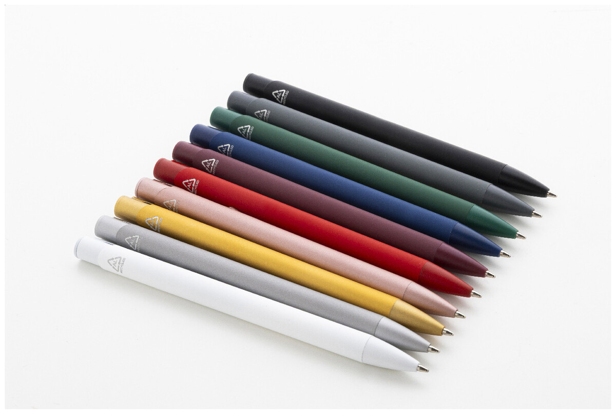 Kuličkové pero z recyklovaného hliníku s pogumovaným tělem a barevnými lesklými kovovými díly. Se speciálním povrchem pro zrcadlové gravírování, které odpovídá kovovým částem. S modrou náplní.