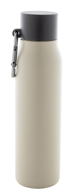 Dvoustěnná vakuová láhev z recyklované nerezové oceli s víčkem z PP a karabinou z recyklovaného hliníku. 500 ml.