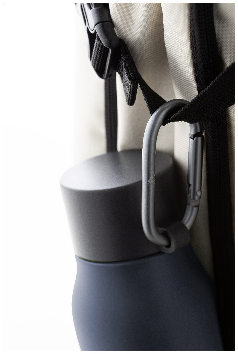 Dvoustěnná vakuová láhev z recyklované nerezové oceli s víčkem z PP a karabinou z recyklovaného hliníku. 500 ml.