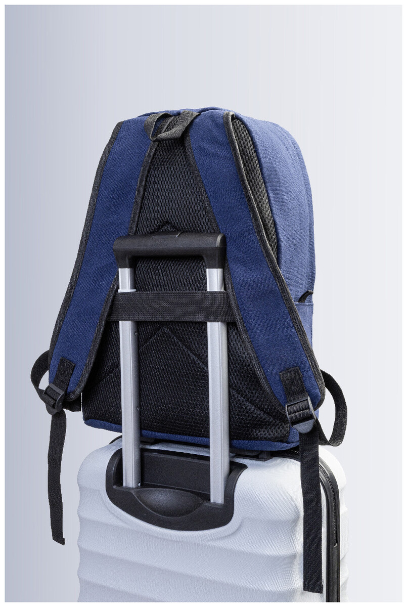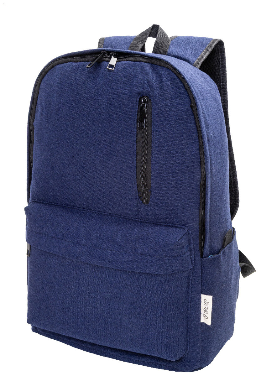Recyklovaný plátěný batoh s hlavní přihrádkou na zip, polstrovanou přihrádkou na notebook (15"), 2 předními kapsami na zip, bočními kapsami, popruhem na kolečkách, polstrovanými zády a ramenními popruhy. 70% recyklované bavlny a 30% RPET polyesteru. S výrazným štítkem recyklované bavlny.