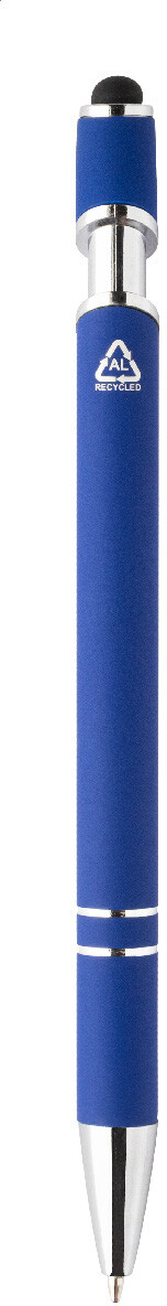 Kuličkové pero a pero pro dotykovou obrazovku z recyklovaného hliníku s pogumovaným tělem a chromovanými detaily. S modrou náplní.