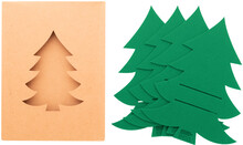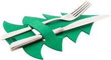 Sada 4 ks RPET plstěných držáků na příbory ve tvaru vánočního stromku. V kraftové papírové krabici.