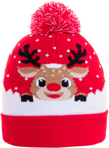Pletená vánoční zimní čepice z akrylu s bambulí.