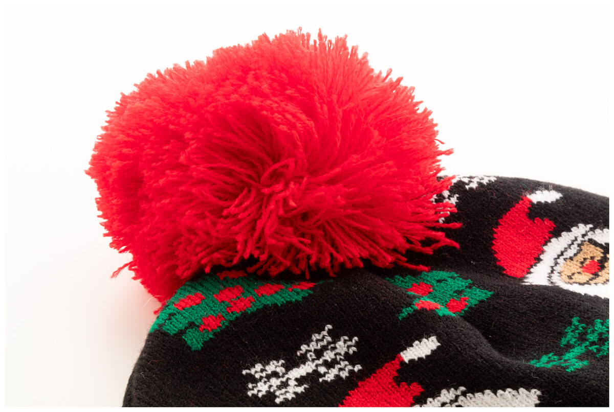 Pletená vánoční zimní čepice z akrylu s bambulí.