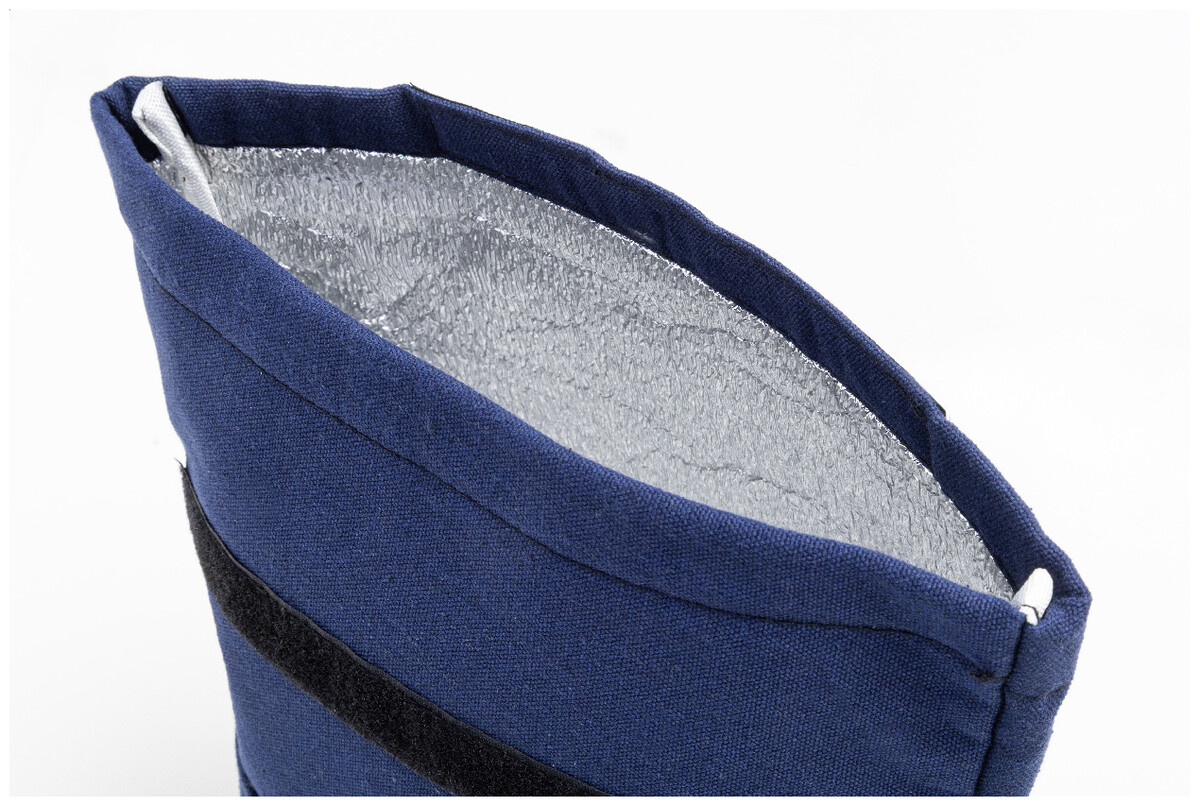 Chladicí taška z recyklovaného plátna s rolovacím vrškem, přední kapsou, hliníkovou výplní a zapínáním na suchý zip. 70 % recyklované bavlny a 30 % RPET polyesteru. S výrazným štítkem recyklované bavlny.