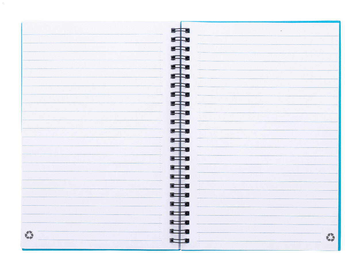 Spirálový blok A5 s 80 linkovanými listy z recyklovaného papíru.