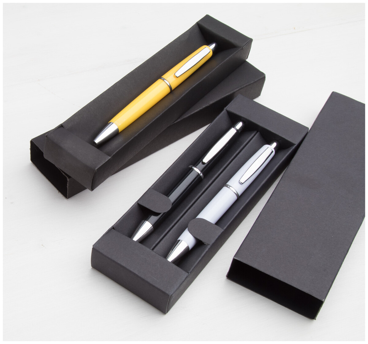Černá dárková krabička z lepenky na 1 pero.