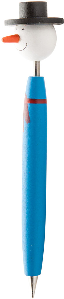 Dřevěné, vtipné kuličkové pero s vánoční figurkou na vršku. S modrou náplní.