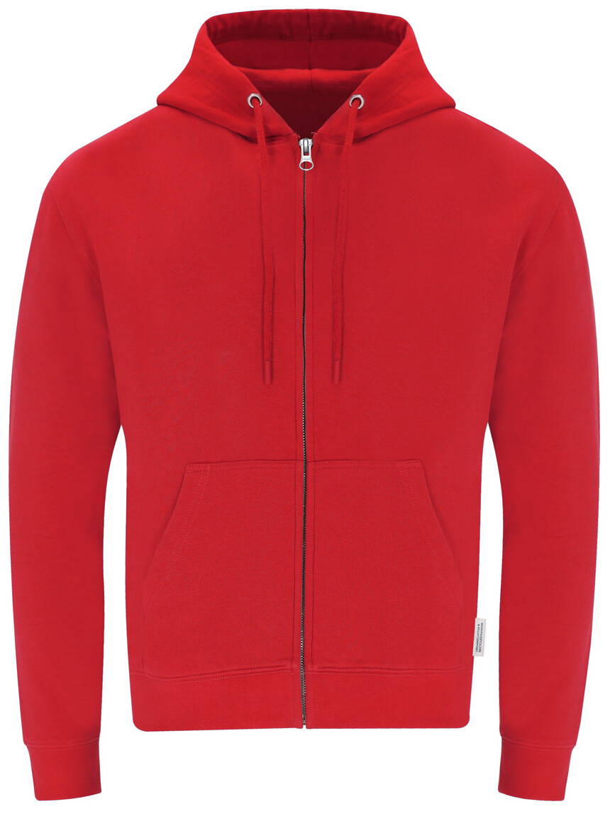 Mikina s kapucí na zip a předními kapsami ze 60% organické bavlny a 40% RPET polyesteru, 280 g/m2.