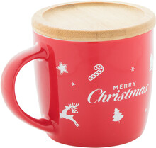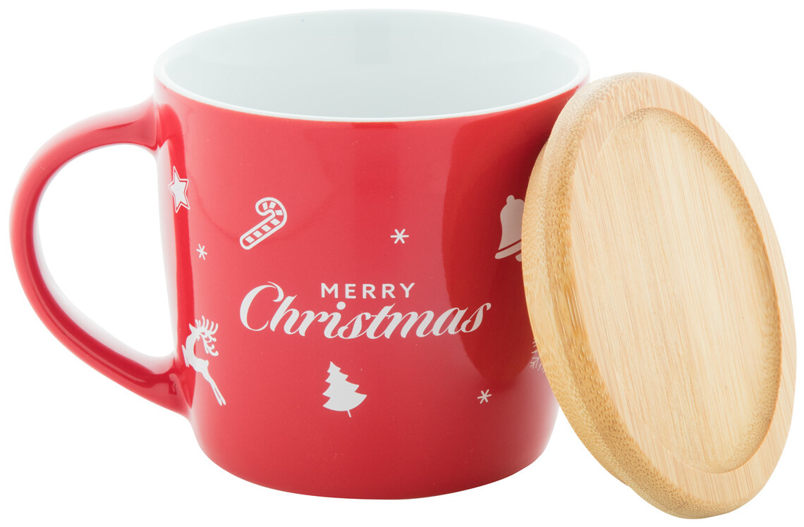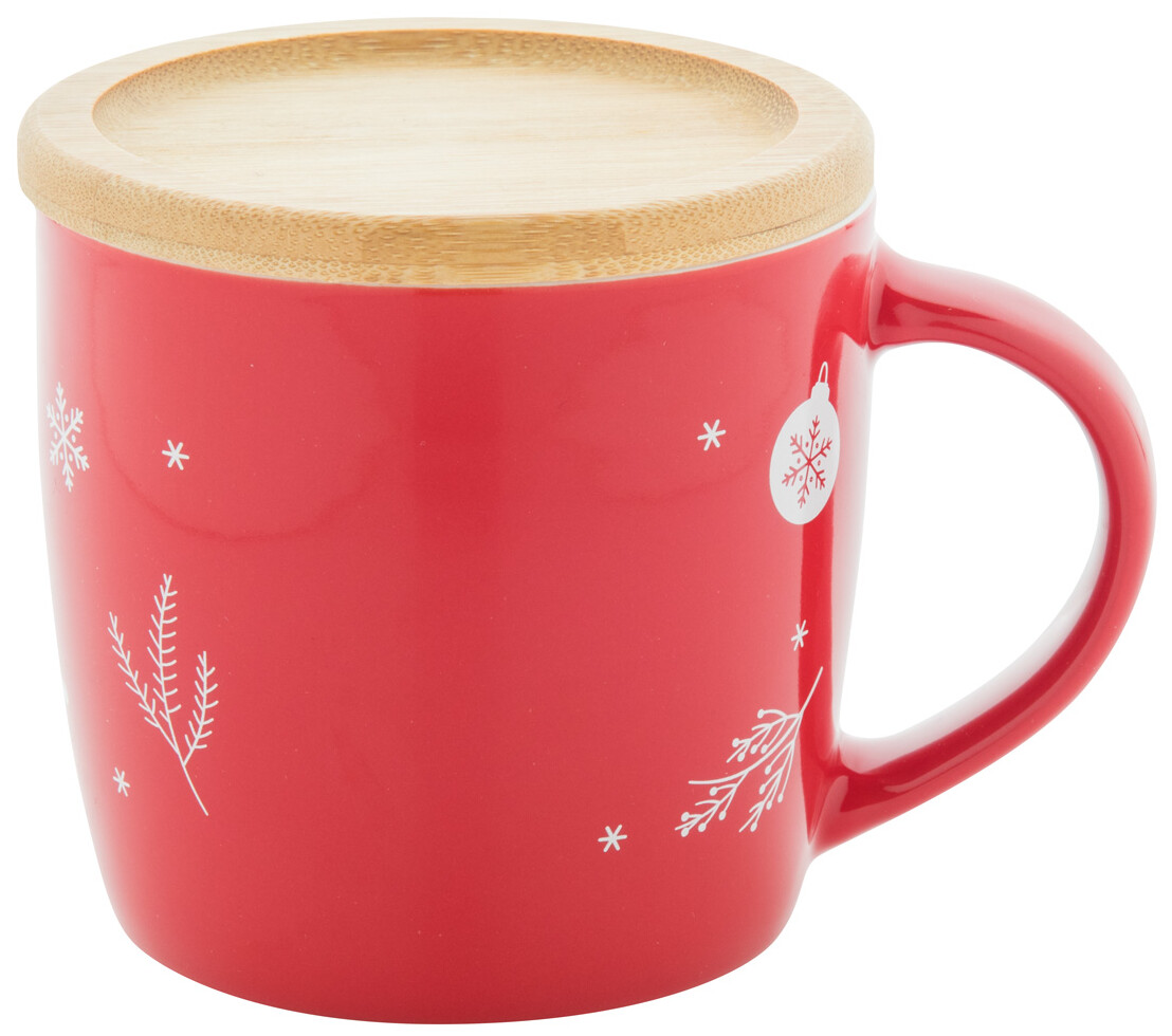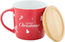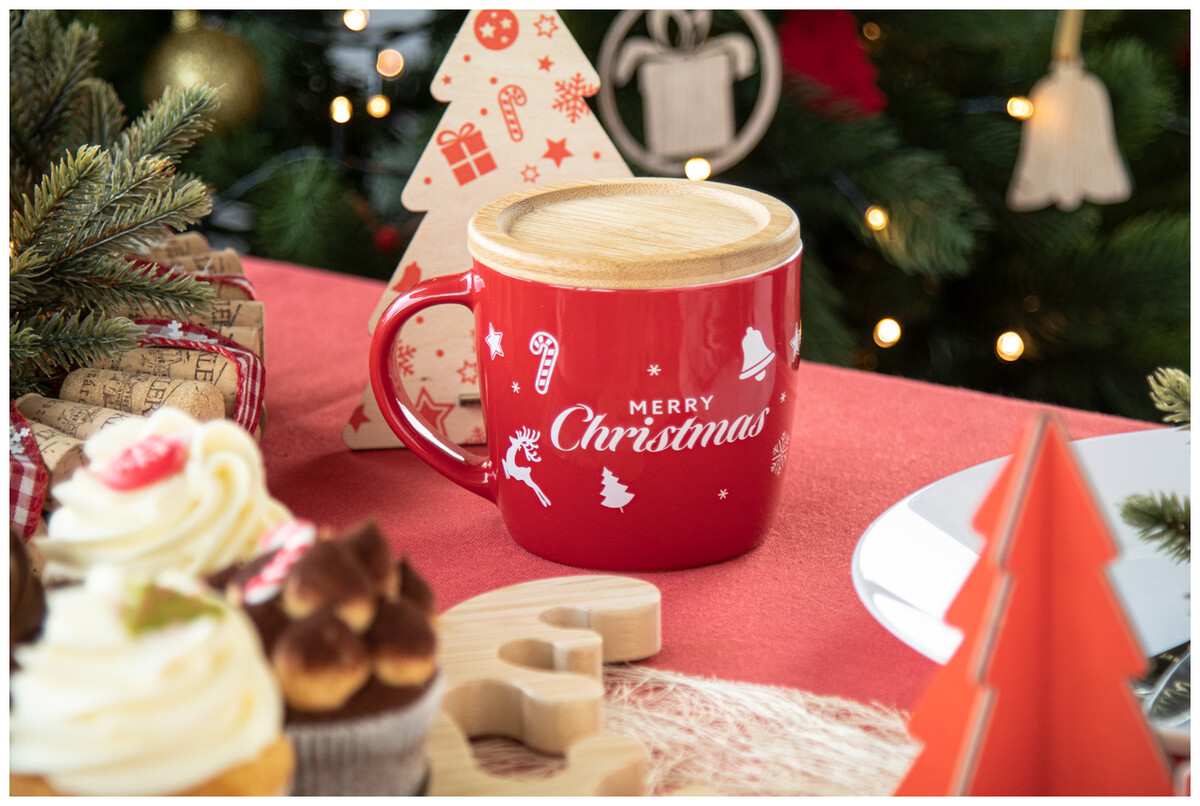 Vysoce kvalitní keramický hrnek s bambusovým táckem a vánočním designem, 370 ml. V kraftové papírové krabici.