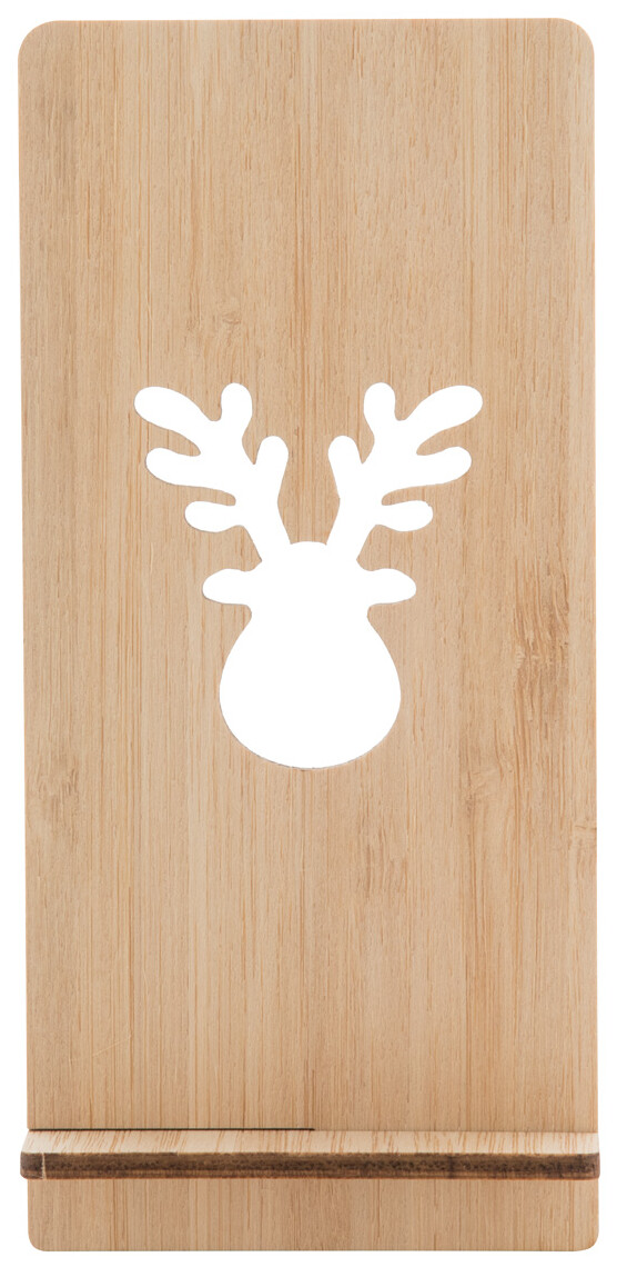 Stojánek na mobil z bambusové překližky s vyřízlým vánočním motivem. Dodáváno rozložené.