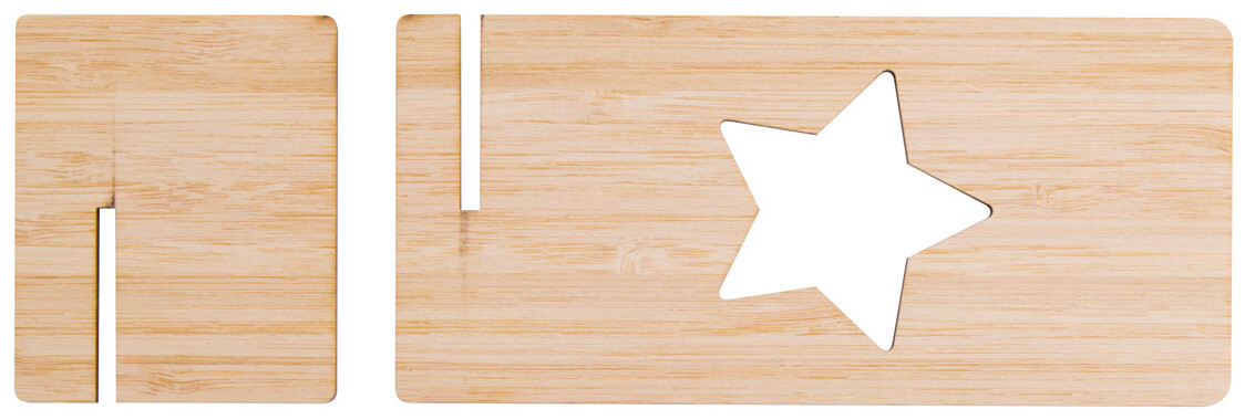 Stojánek na mobil z bambusové překližky s vyřízlým vánočním motivem. Dodáváno rozložené.