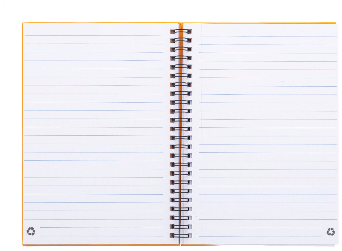 Spirálový blok A5 s 80 linkovanými listy z recyklovaného papíru.