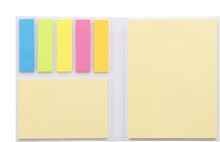 Samolepicí poznámkový blok z recyklovaného papíru s 50 velkými a 25 středními žlutými poznámkami a 125 značkovačistránek (v 5 barvách).