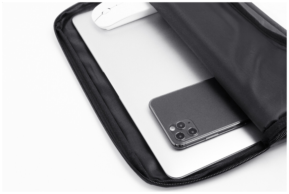 Taška na notebook z polyesteru 600D RPET s přihrádkou na zip a vnitřním polstrováním. Vhodná pro notebooky do velikosti 15". S výrazným štítkem RPET.