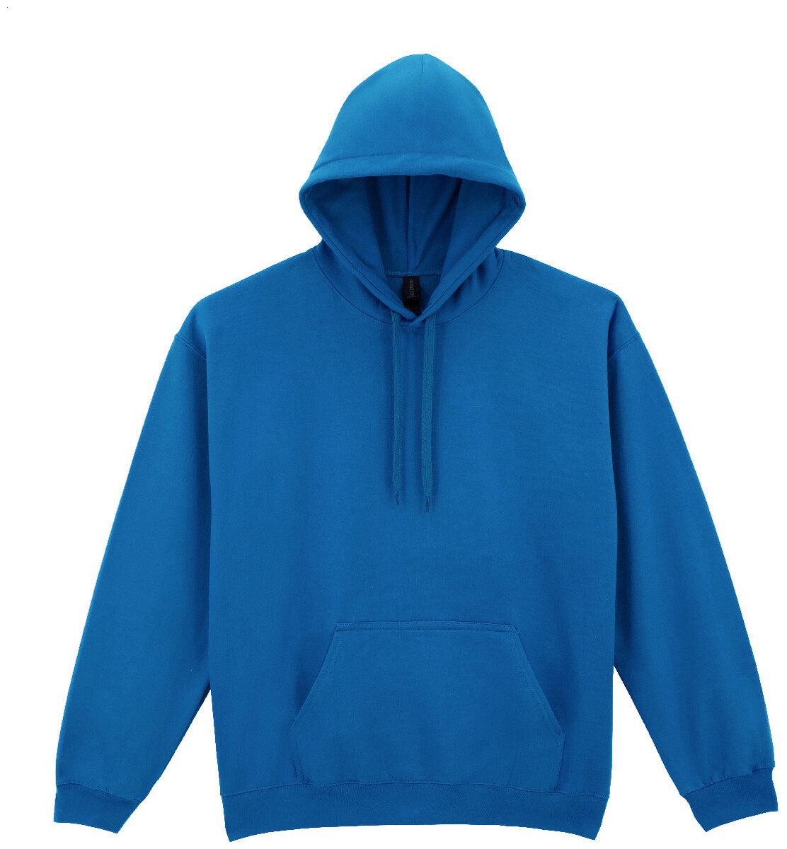 Mikina s kapucí, 80% bavlna a 20% polyester s přední kapsou. 285 g/m2 (bílá 278 g/m2). Značka Gildan.