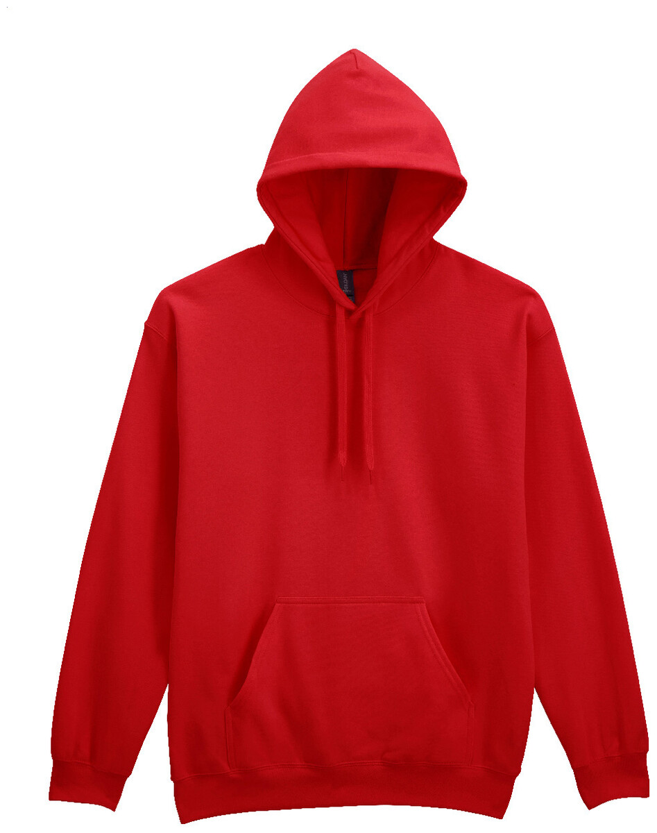 Mikina s kapucí, 80% bavlna a 20% polyester s přední kapsou. 285 g/m2 (bílá 278 g/m2). Značka Gildan.
