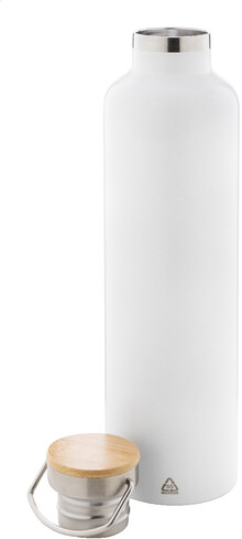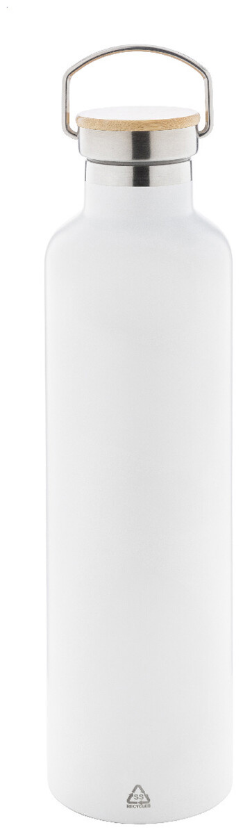 Dvoustěnná vakuově izolovaná láhev z recyklované nerezové oceli s bambusovým víčkem, 1000 ml.