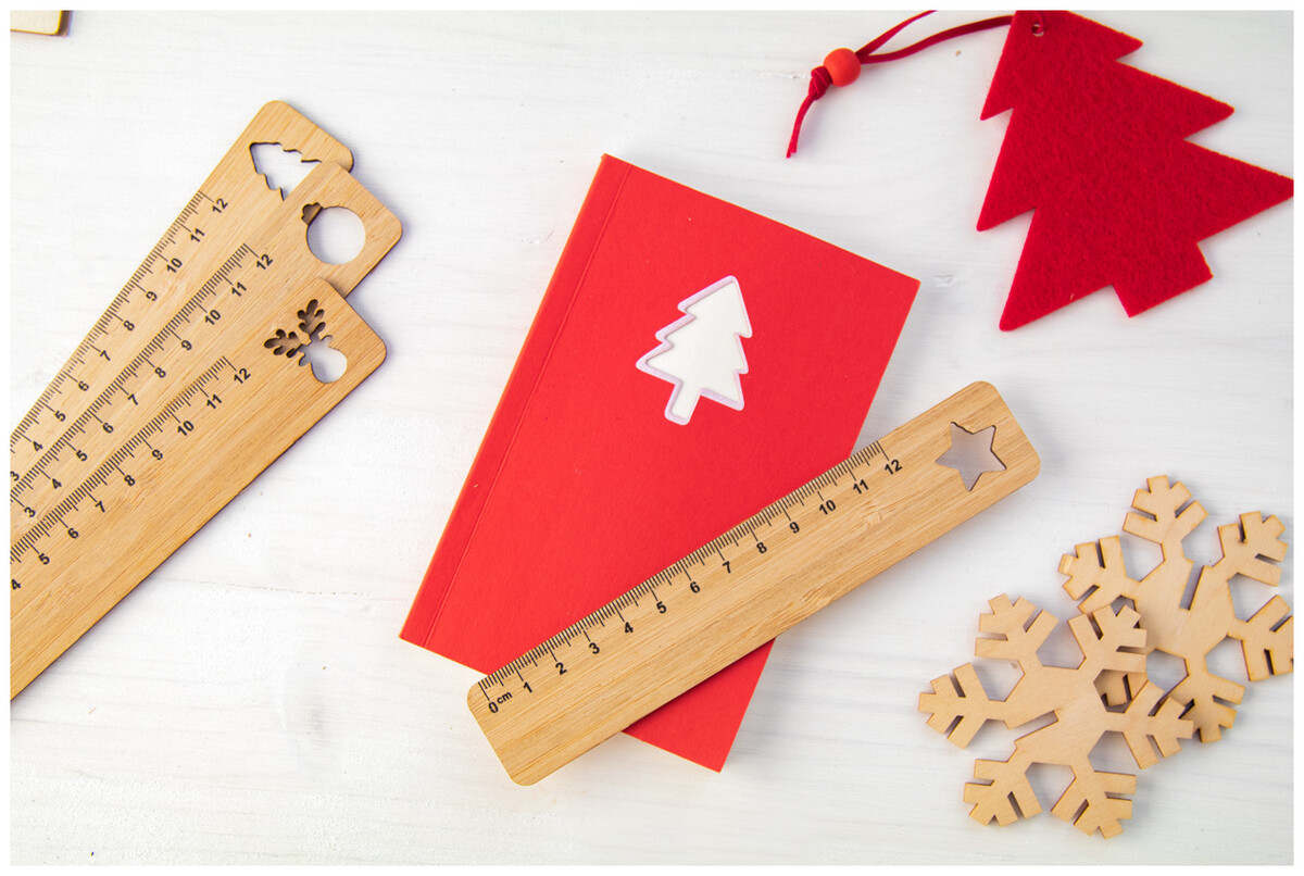 12 cm pravítko z bambusu a vyseklým vánočním motivem.