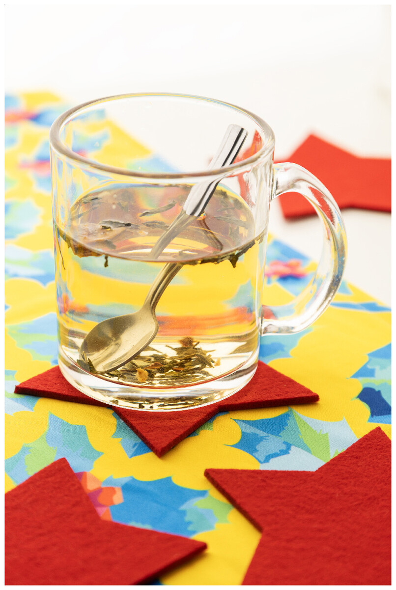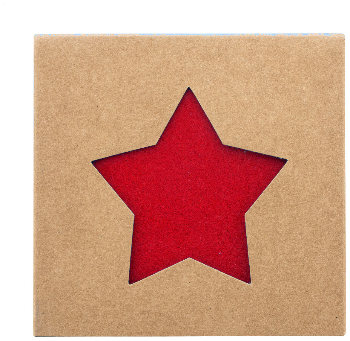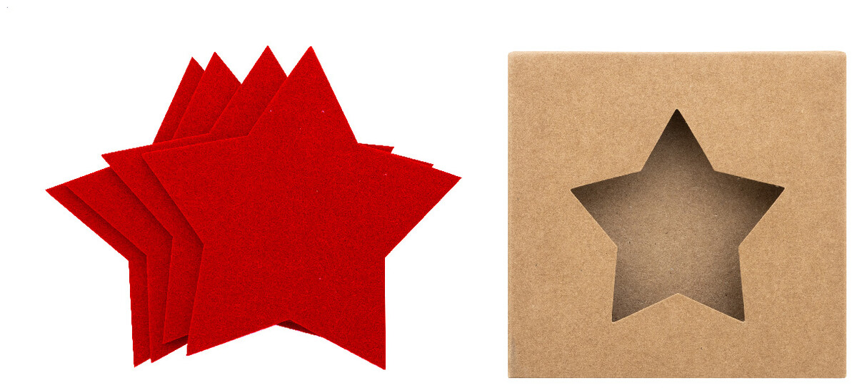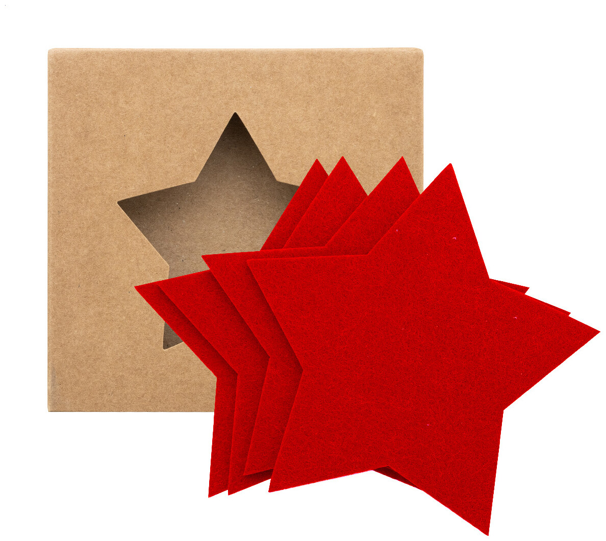 Sada 4 vánočních podtácků z plsti RPET ve tvaru hvězdy. V krabičce z kraftového papíru.
