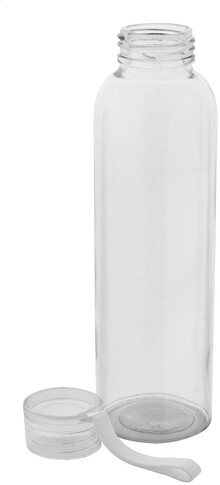 Láhev z recyklovaného skla s barevně odpovídajícím PP víčkem a silikonovým popruhem, 500 ml. Nevhodné pro sycené nápoje.