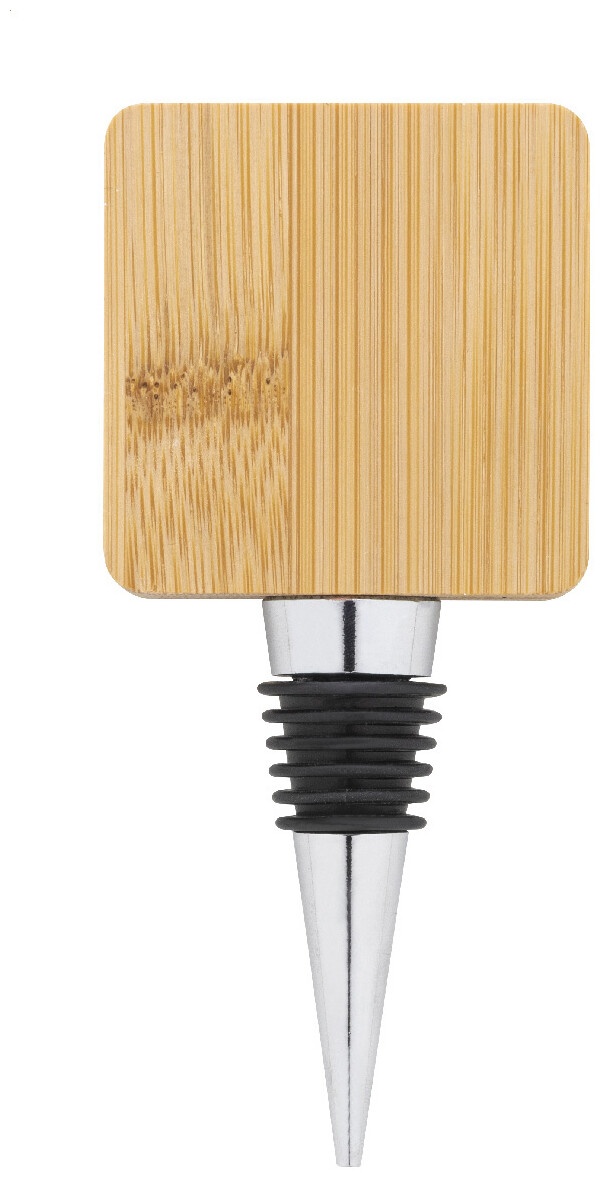 Kovová zátka na víno s čtvercovým bambusovým otvírákem na lahve.