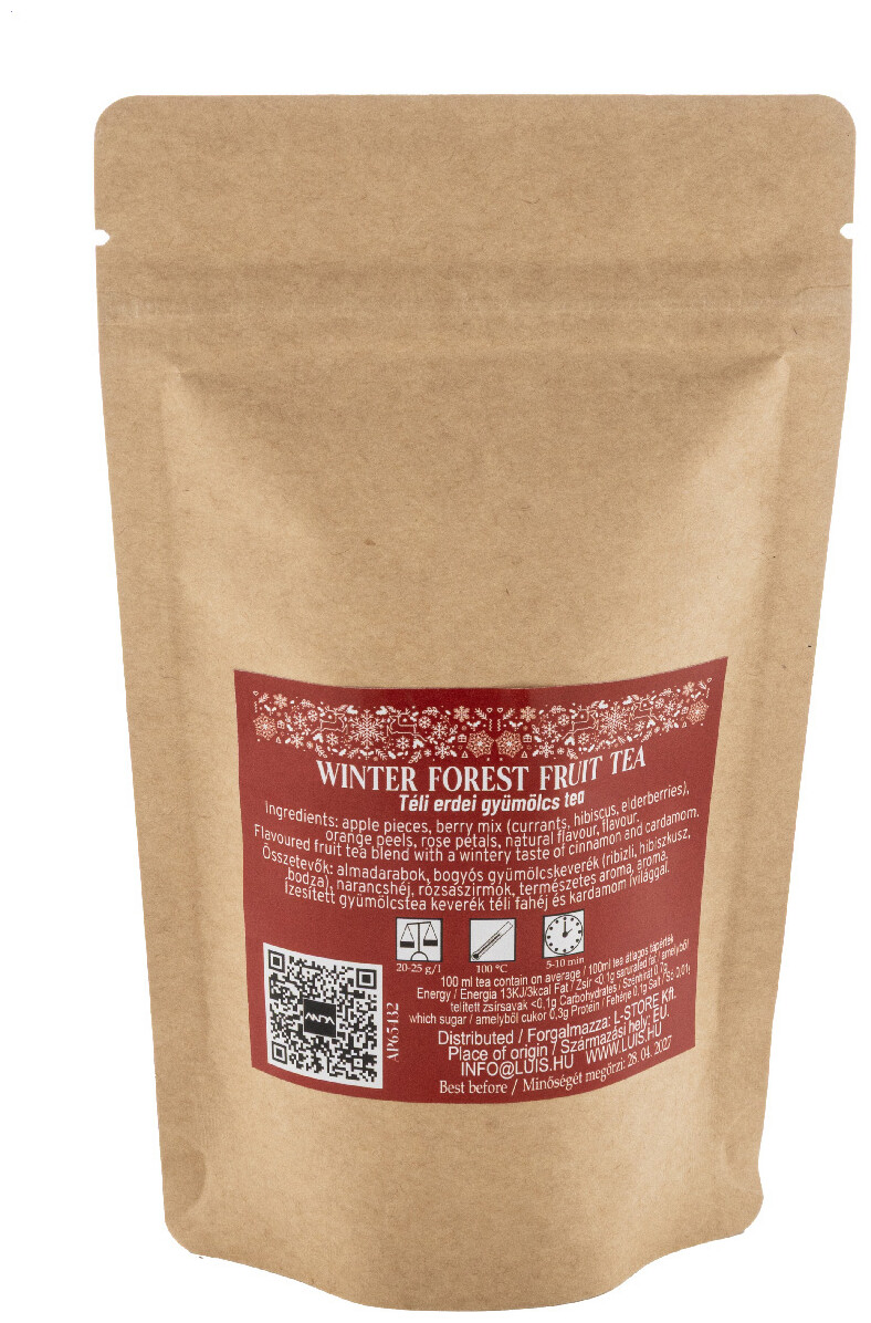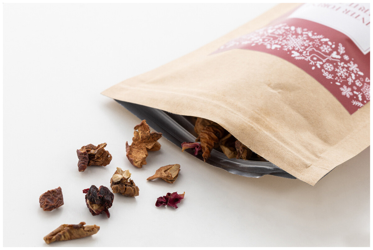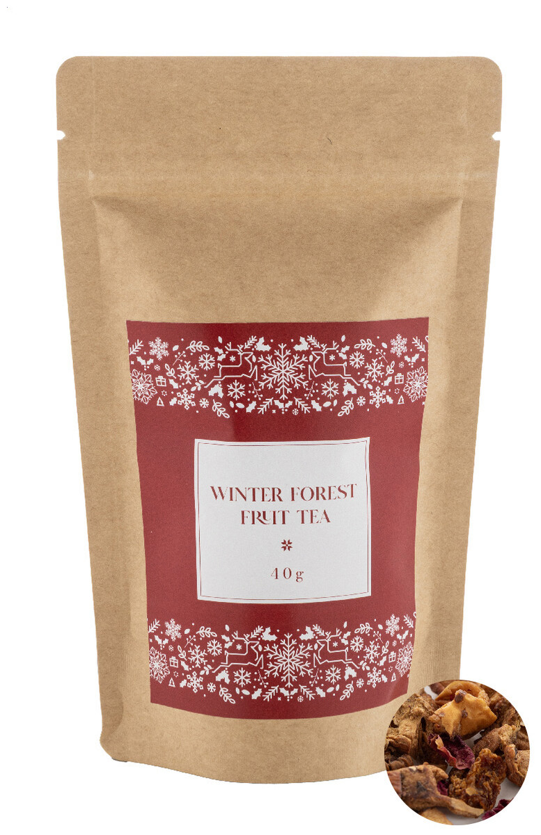 Sypaný zimní čaj z lesních plodů balený v přírodním kraftovém papírovém sáčku. 40 gramů.