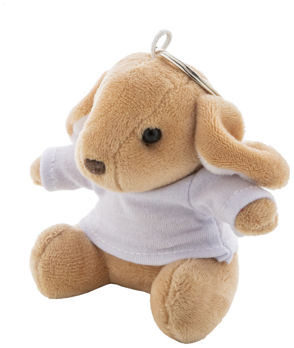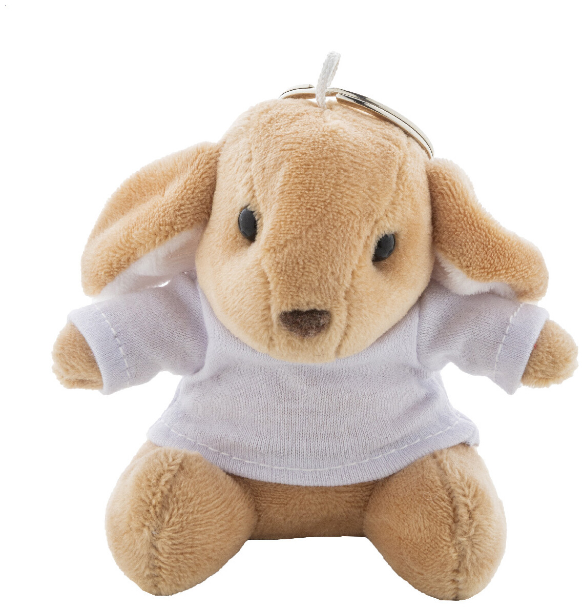 Plyšový přívěsek na klíče se zajícem s tričkem na potisk.