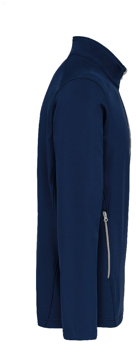 Dvouvrstvá softshellová bunda na zip s bočními kapsami na zip. S kontrastními zipy. Vodoodpudivá tkanina. Vnější strana: 95 % polyester a 5 % elastan. Vnitřní strana: 100% polyester micro polar fleece. Materiál: 300 g/m2. Výrobek značky Kariban.