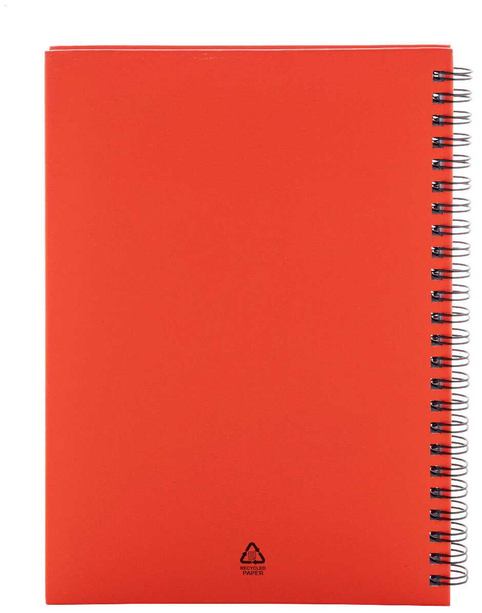Spirálový blok A5 s 80 linkovanými listy z recyklovaného papíru.