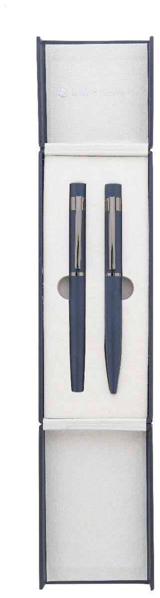 Elegantní sada kovového kuličkového pera a rolleru s lesklými detaily v barvě antracit. V barevně sladěné dárkové krabičce a s modrou náplní. Produkt značky André Philippe.