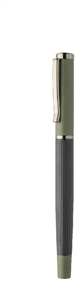Elegantní sada kovového kuličkového pera a rolleru s pruhovaným tělem, barevnými akcenty a lesklými detaily v barvě antracit. V barevně sladěné dárkové krabičce a s modrou náplní. Produkt značky André Philippe.
