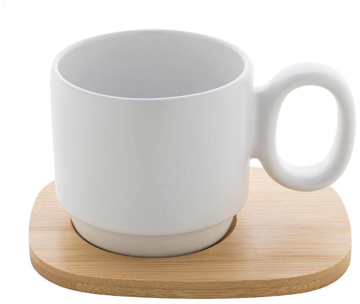 Vysoce kvalitní keramický hrnek s matným vnějším a lesklým vnitřním povrchem. Včetně bambusového servírovacího podnosu. 220 ml. V krabičce z kraftového papíru.