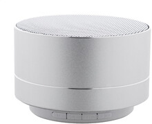 Bezdrátový reproduktor z recyklovaného hliníku s kovovou síťovinou, LED světlem na spodní straně a dobíjecí baterií (300 mAh). S funkcí handsfree hovorů a přehrávání MP3 z micro SD karty. Včetně nabíjecího kabelu USB.