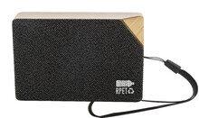 Bezdrátový reproduktor z bambusu s polyesterovou síťovinou RPET, vestavěnou solární nabíječkou, popruhem na nošení a dobíjecí baterií (300 mAh). Včetně nabíjecího kabelu USB.