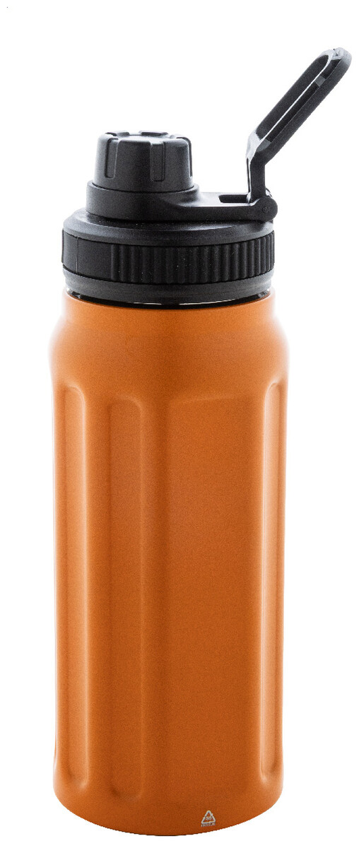 Dvoustěnná termoska z recyklované nerezové oceli s vertikálními drážkami. S víčkem z polypropylenu a s integrovaným držadlem. 540 ml.