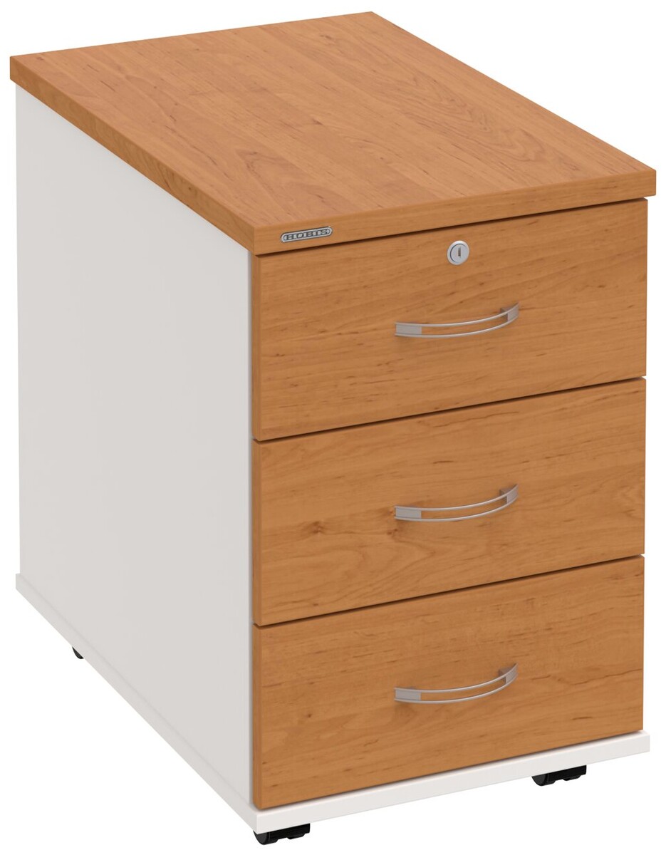 Kancelářské kontejnery nabízíme ve 4 modelech, které se liší uspořádáním zásuvek. Využití naleznou,spolu s ostatními řadami kancelářského nábytku HOBIS, ve všech kancelářských prostorech. Rozměry jsou 40 cm šířka, 60 cm hloubka a 60 cm výška. Protože jsme si vědomi nároků na zajištění bezpečnosti obsahu kontejnerů, osadili jsme většinu z nich zámky s centrálním zamykáním. Stačí zamknout jednu zásuvku a současně tak uzamknete i všechny ostatní. Díky integrovanému systému STOPCONTROL v uzamykacím mechanismu se nemusíte bát převrhnutí kontejneru nebo případného skřípnutí rukou. Systém zaručí, že při otevření jedné zásuvky se ostatní zásuvky automaticky zablokují. Stoly můžete vybírat z nabídky kancelářského nábytku HOBIS.