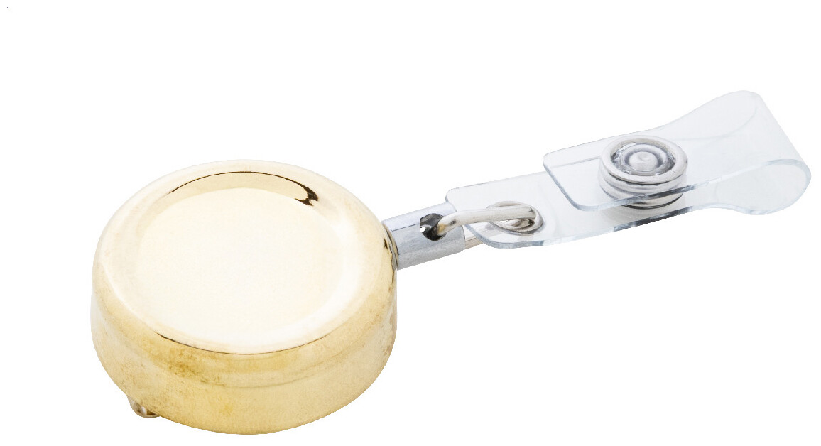 Exkluzivní kovový držák na ski pass s vysoce lesklou metalickou povrchovou úpravou. Zapínání na druk, teleskopická šňůra a kovová spona.
