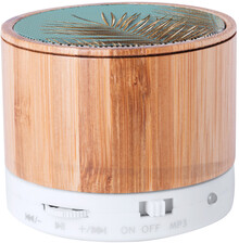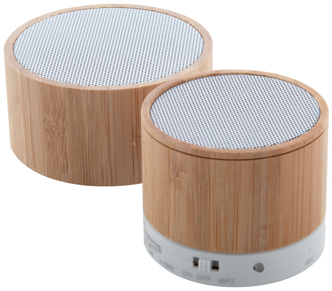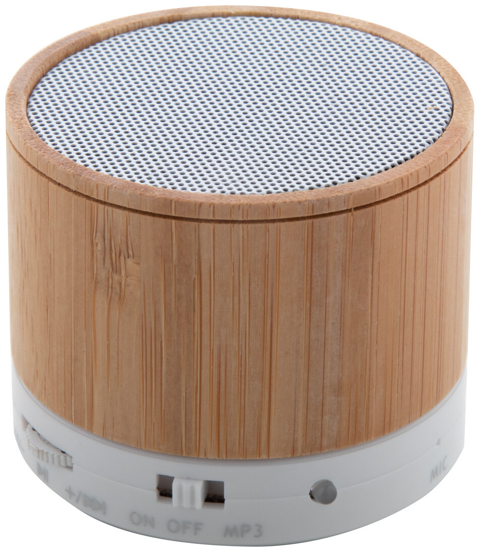 Bezdrátový reproduktor v bambusovém pouzdře s funkcí hands-free volání, FM rádiem a vestavěnou dobíjecí baterií. Včetně nabíjecího kabelu USB.