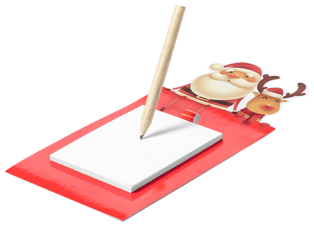 Poznámkový blok s magnetkou se 40 prázdnými listy a figurkou nahoře. Včetně mini dřevěné tužky.