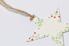 Papírová ozdoba na vánoční stromeček s jutovým provázkem. Obal semenného papíru obsahuje semena petúnie v různých barvách, která lze zasadit oddělením z provázku.