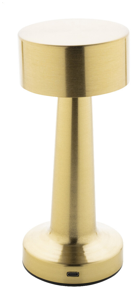 Kovová stolní lampa se zlatou povrchovou úpravou, 24 LED diodami, nastavitelným jasem a dobíjecí baterií USB 800 mAh. S režimy teplého, přirozeného a studeného světla. Včetně nabíjecího kabelu USB.