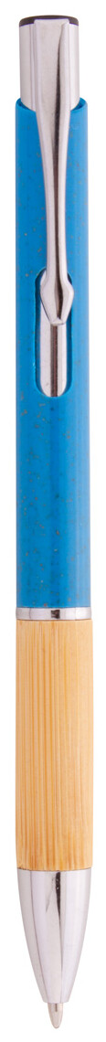Ekologické plastové kuličkové pero z pšeničné slámy s bambusovým úchopem a kovovými částmi. S modrou náplní.