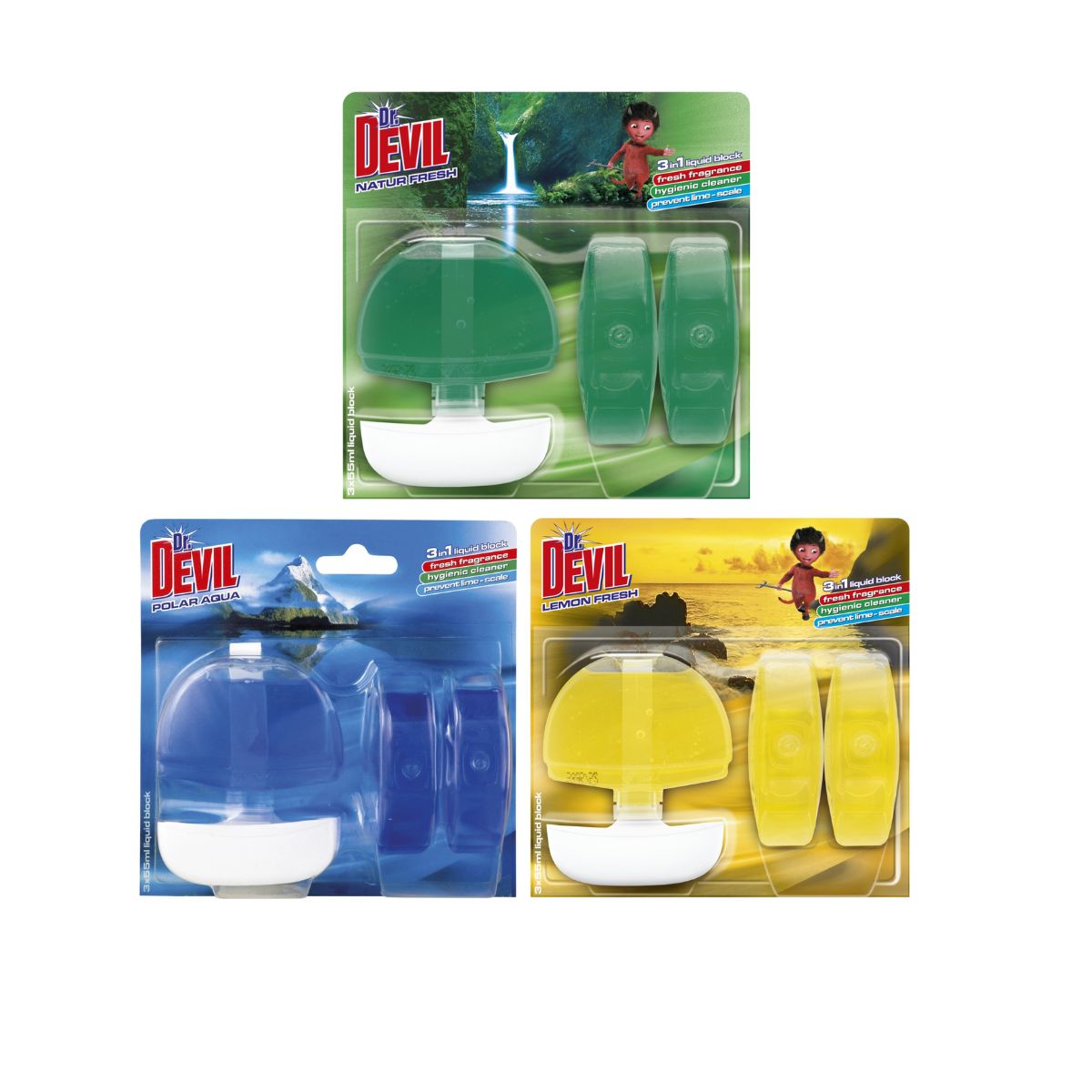 | 1743103 | WC blok Dr. Devil 3 in 1, Lemon Fresh, žlutý, 3 x 55 ml | 49,30 Kč | 59,65 Kč | 1 ks | |||