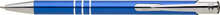 TRIALI hliníková reklamní tužka. Lesklé modré tělo se třemi stříbrnými proužky a chromovými doplňky.