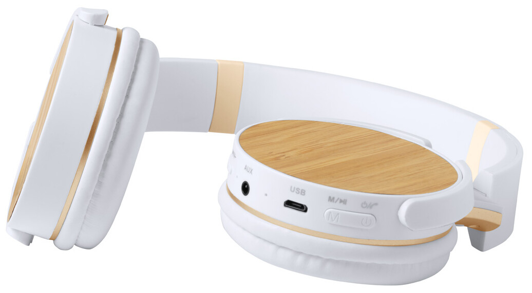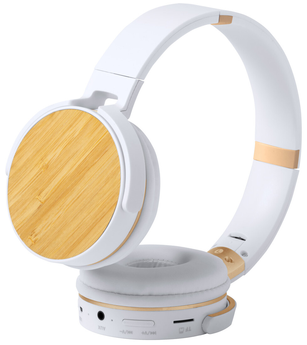 Bezdrátová sluchátka s bambusovým dekorem a vestavěnou dobíjecí baterií. S funkcí hands-free volání a přehrávání MP3 z micro SD. Včetně 3,5 mm audio konektoru Jack a nabíjecího kabelu USB.